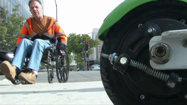 "I've been hit a couple times. People just run into the front of my chair," said Jean Rocque, a wheelchair user. "I've actually had to pick 'em up off the sidewalk and swing em around. I can't pick 'em up but I can maneuver them out of my way."