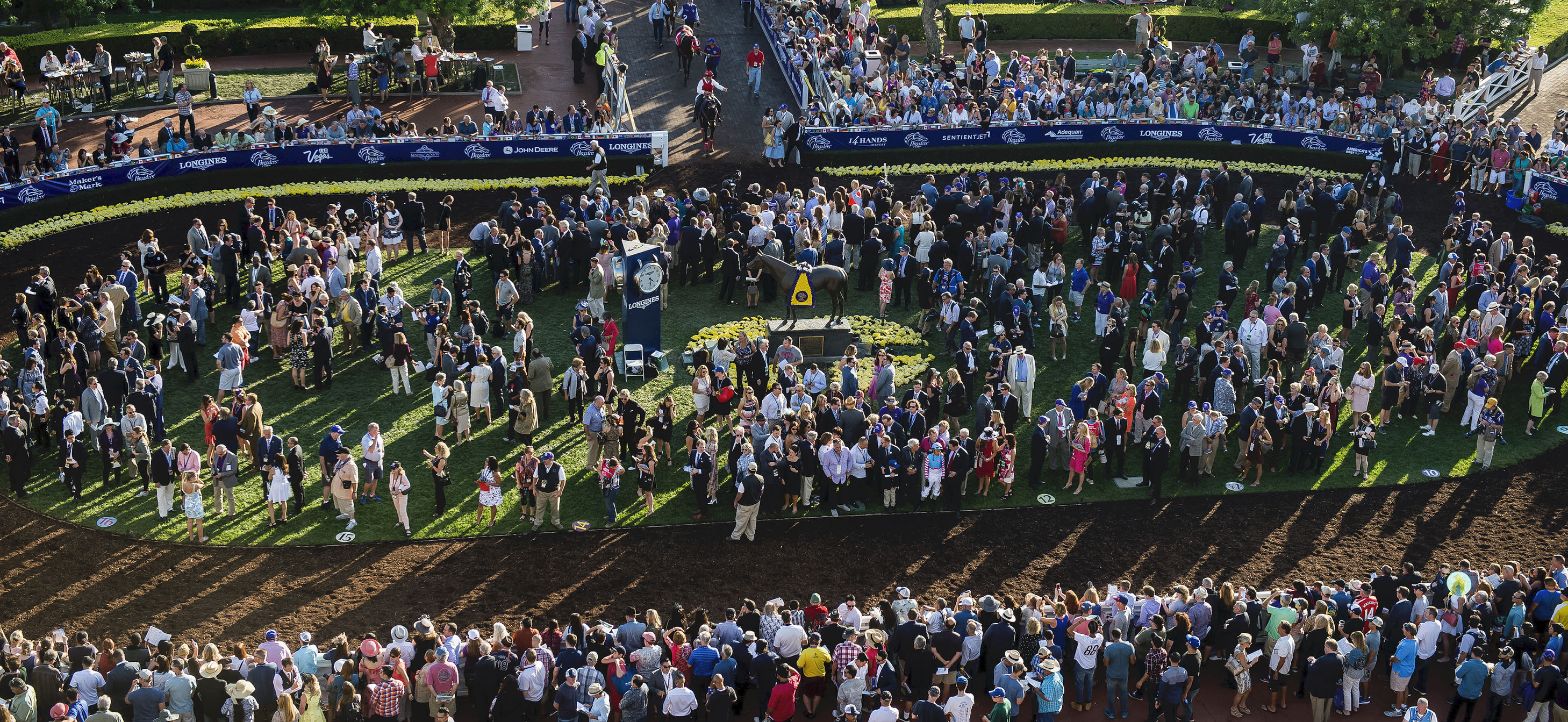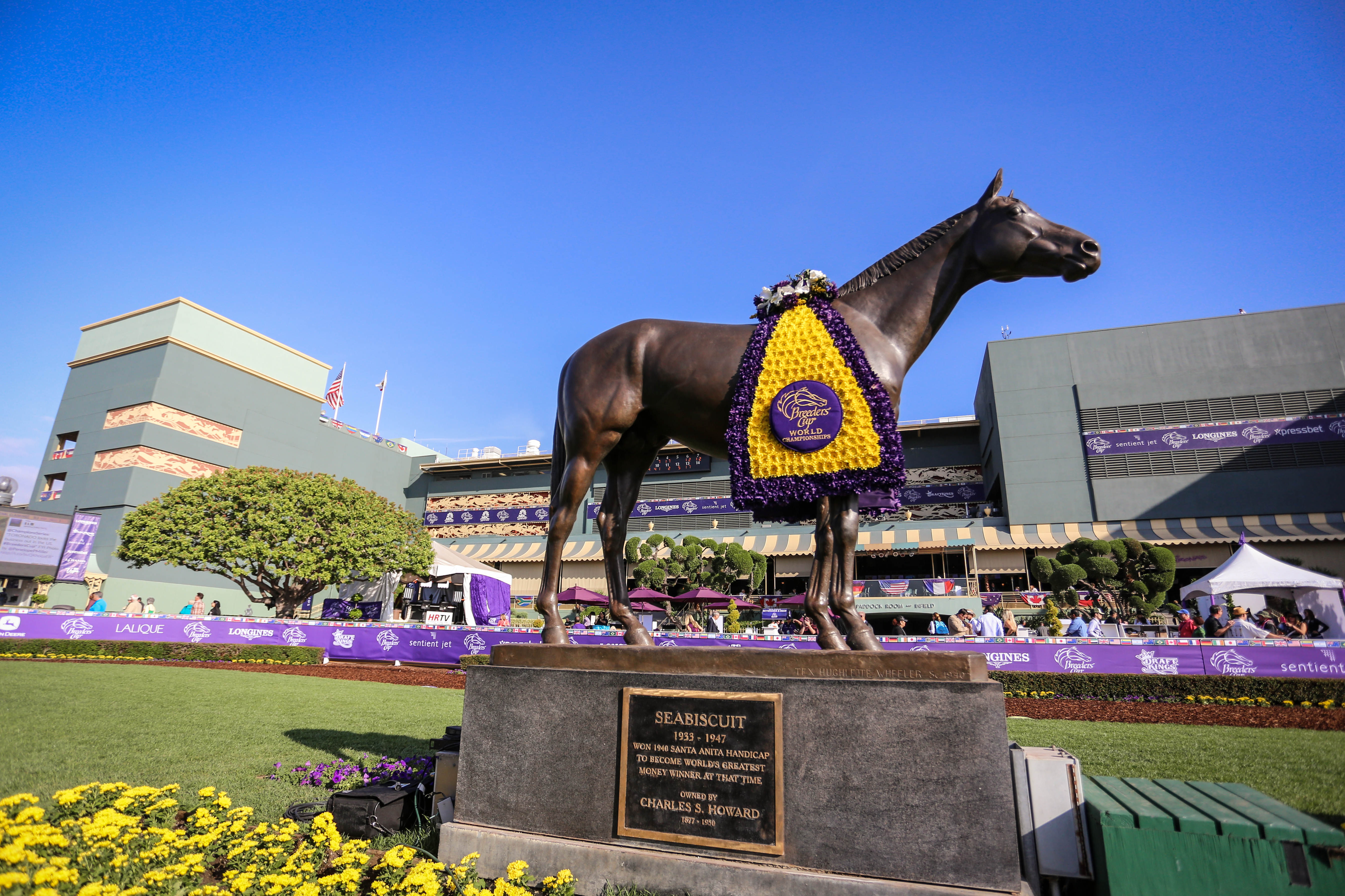 Even the statues dress up: Winning horses get to don the flower blanket. The official flower garland is comprised of the rare combinations of beauty asters, golden asters, cremons and catteleya orchids.