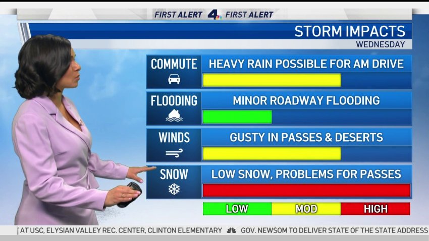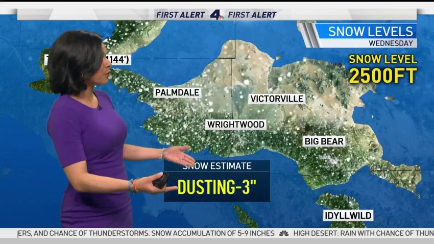 Rain, snow and cool temperatures are in the mid-week forecast the a weak storm pushes into Southern California.